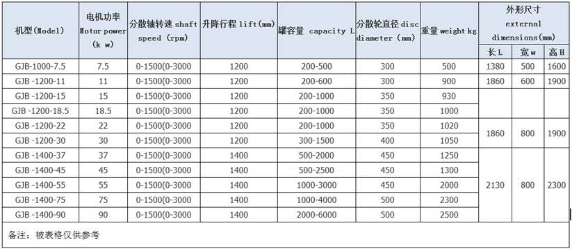 l 分散盤型式:平盤鋸齒式、三義槳式、碟式、其它形式;